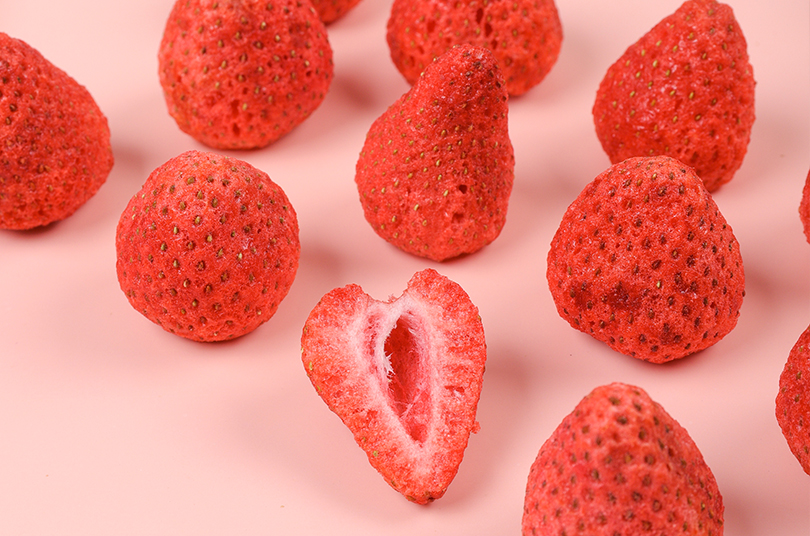 4. 凍干:處理后的草莓會(huì)進(jìn)行凍干處理,使水分從固態(tài)直接升華成氣態(tài)。