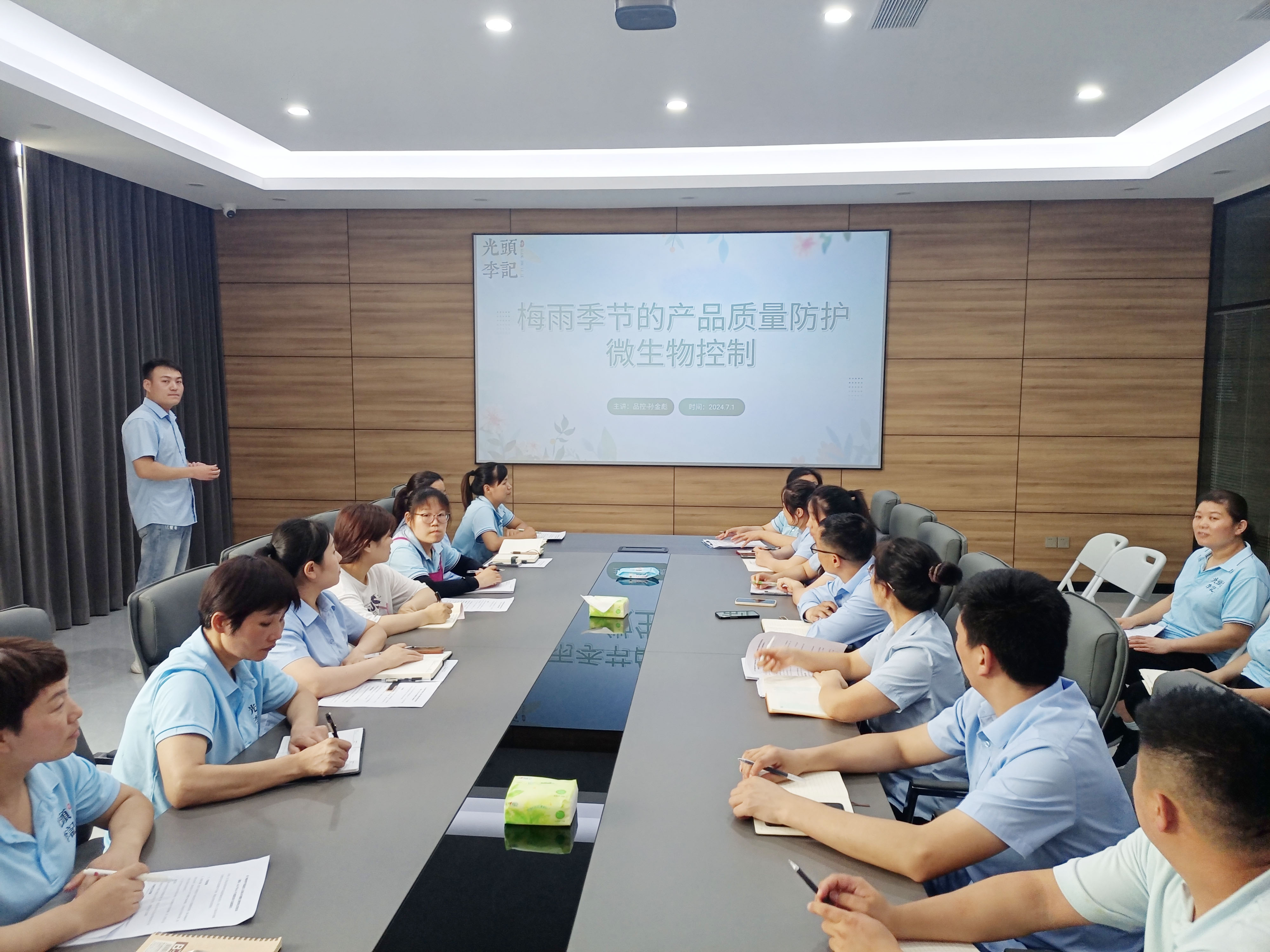 進(jìn)入7月,高溫多雨的梅雨季節(jié)也已到來(lái)。在食品加工過(guò)程中“微生物污染源”很多,如何防止產(chǎn)品被污染絕對(duì)是首要的任務(wù)。7月1日下午,公司組織員工開展“梅雨季節(jié)的產(chǎn)品質(zhì)量防護(hù) 微生物控制”主題培訓(xùn),通過(guò)7個(gè)方面進(jìn)行全面講解及專業(yè)指導(dǎo),讓員工從細(xì)節(jié)認(rèn)識(shí)到規(guī)范操作和衛(wèi)生清潔的重要性。