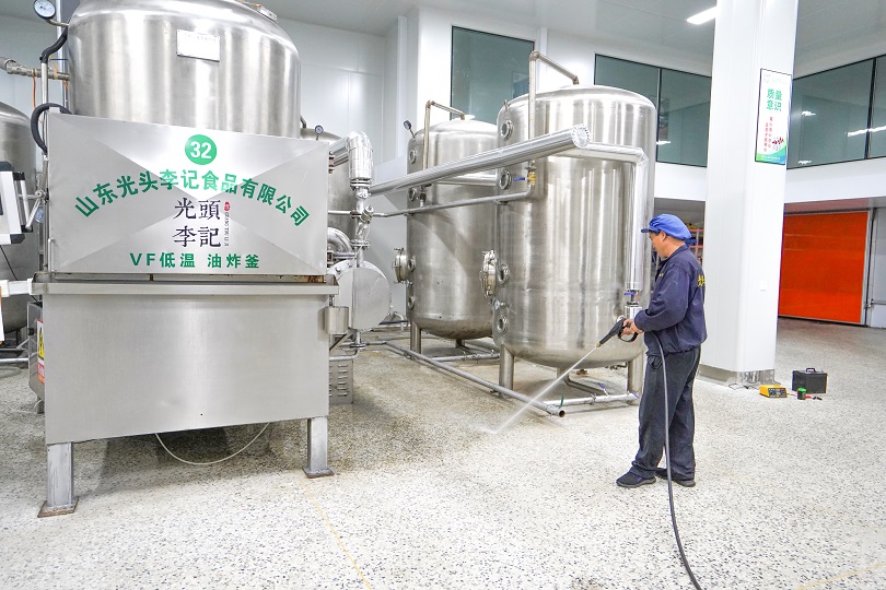 山東光頭李記食品有限公司于今年正式啟用新投建廠房,環(huán)境衛(wèi)生自然是要跟得上。炎熱的天氣抵擋不了大家的熱情,各部門積極響應,按照“全面覆蓋,不留死角”的工作要求有序分工,利用一整天時間對整個廠區(qū)進行徹底大掃除,確保整個工作區(qū)整潔靚麗。
